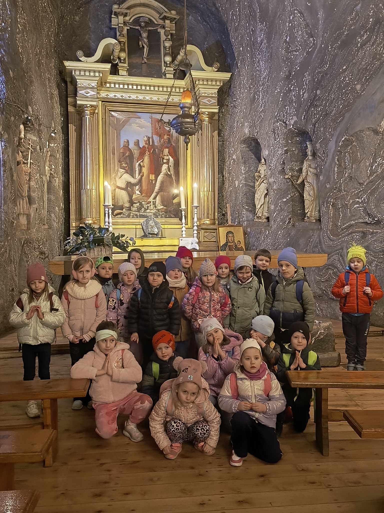 6 marca 2026 r. dzieci z grupy 3 i 4 wybrały się na wycieczkę do Kopalni Soli w Bochni. Podczas wizyty przedszkolaki zwiedziły trasę multimedialną, dzięki której w ciekawy i atrakcyjny sposób poznały historię kopalni oraz pracę dawnych górników. Dużą atrakcją było spotkanie ze Skarbnikiem – legendarnym opiekunem kopalni, który opowiedział dzieciom o podziemnym świecie soli i górniczych tradycjach. Na zakończenie wycieczki dzieci wzięły udział w zabawach w Komorze Ważyn, gdzie mogły aktywnie spędzić czas w niezwykłej, podziemnej przestrzeni. Wyjazd dostarczył przedszkolakom wielu radosnych wrażeń oraz był doskonałą okazją do poznania jednego z najciekawszych miejsc w naszym regionie.